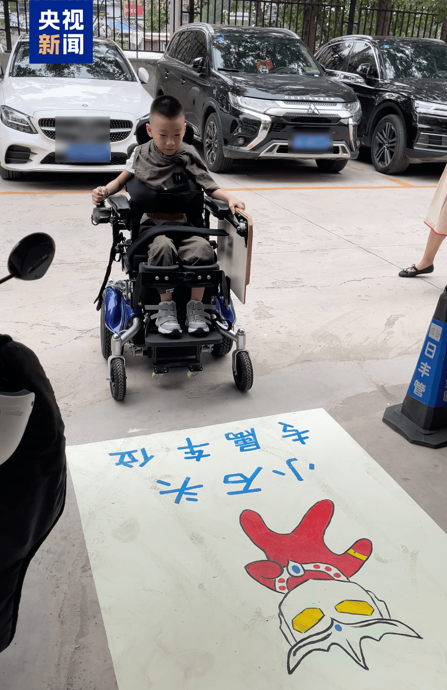 为了方便小石头在校学习,小石头的家人还为他准备了专属的电动轮椅,轮椅上还有一个折叠桌,方便他学习及生活。了解到小石头的情况后,学校还为他打造了“专属车位”,用于停放电动轮椅,车位上还画着他最喜爱的卡通形象。