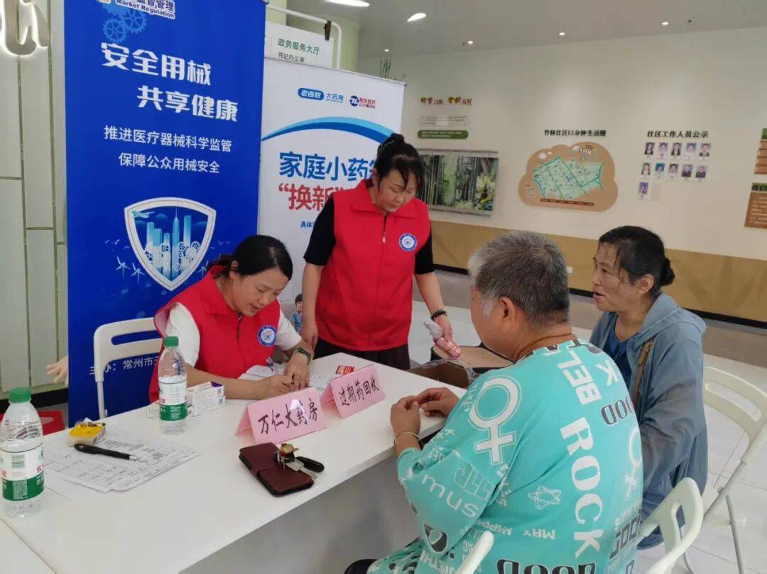 天宁区市场监管局组织天宁区“药”安全药事服务站、红梅街道“药”安全药事服务点,走进红梅街道竹林社区,开展“药”安全药事服务进社区活动。活动现场,药事服务队员向市民发放“药”安全“药”知道宣传资料,指导市民清理家庭药箱,对过期药品进行登记回收,并提供免费血压、血糖检测和眼部雾化等药事服务。